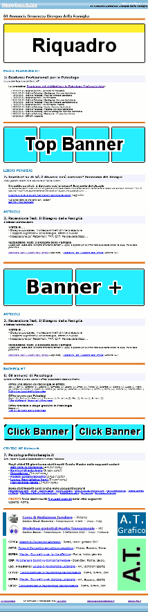 Spazi pubblicitari presenti: Riquadro (in alto); Top Banner (sempre in alto); Banner+ (circa a metà); Click Banner (nella seconda metà),